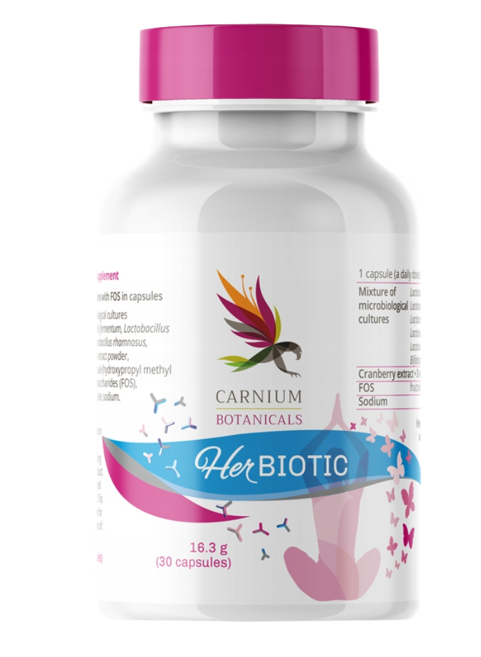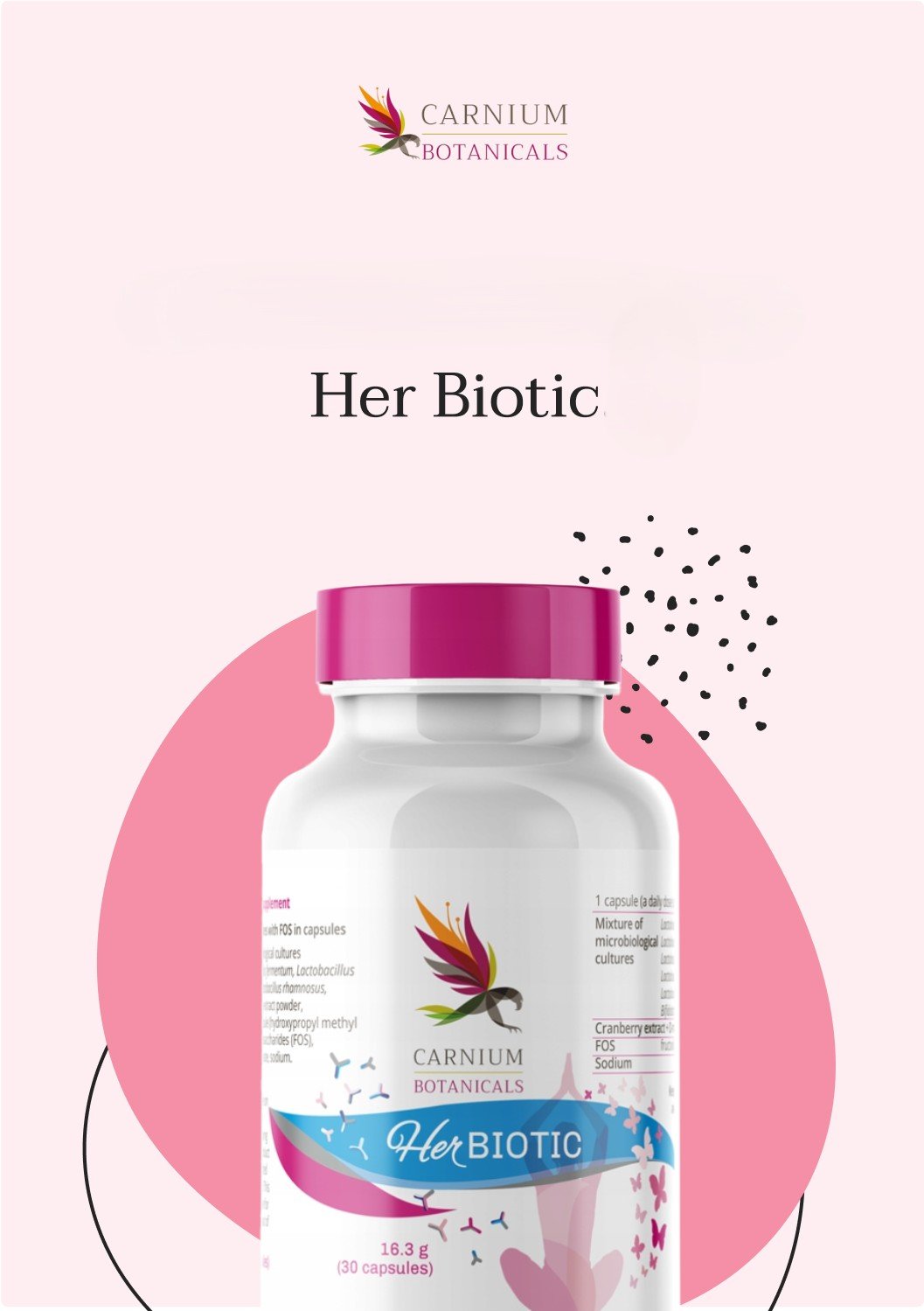 A Her Biotic egy kifejezetten nők számára kifejlesztett étrend-kiegészítő. Gondosan kiválasztott probiotikus törzsek, D-mannóz és áfonyakivonat keverékét tartalmazza. A probiotikumok olyan élő mikroorganizmusok, amelyek megfelelő mennyiségű fogyasztás esetén megtelepednek a bélben, és fontosak a kiegyensúlyozott bél- és hüvelyflóra szempontjából. A D-mannóz egy természetes cukor, amely egyes gyümölcsökben, például az áfonyában található. A húgyutak egészségének támogatására szolgáló étrend-kiegészítők összetevőjeként használják. A termék egyik összetevője a tőzegáfonya, amely természetes antioxidánsként hat. Az áfonya segít megvédeni a szervezetet az oxidatív károsodástól, és csökkenti az oxidációs és peroxidációs folyamatok által okozott kockázatokat. Ezenkívül a tőzegáfonya segít a hasznos mikroflóra növekedésének fokozásában, ami fontos az emésztőrendszerben lévő mikroorganizmusok egészséges egyensúlyának fenntartásához. Az egészséges mikrobióta fontos szerepet játszik az emésztésben és a tápanyagok felszívódásában, valamint a káros kórokozók elleni védelemben. A kapszulákat úgy tervezték, hogy a probiotikumok áthaladhassanak az emésztőrendszeren, így növelve hatékonyságukat. A Her Biotic alkalmas napi használatra az egészséges étrend és életmód részeként.