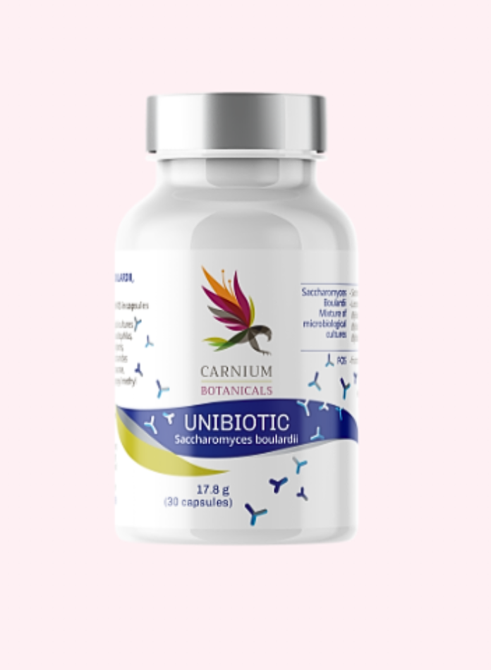 Az Unibiotic egy innovatív étrend-kiegészítő a gyomor-bélrendszer egészségének holisztikus támogatására. Fejlett formulája 5 milliárd aktív Saccharomyces Boulardii kultúrát tartalmaz, amely a bél mikrobiótára gyakorolt jótékony hatásáról ismert, valamint 1,5 milliárd mikrobakultúrát, köztük Lactobacillus acidophilus, Bifidobacterium breve, Bifidobacterium infantis és Bifidobacterium longum mikrobákat.