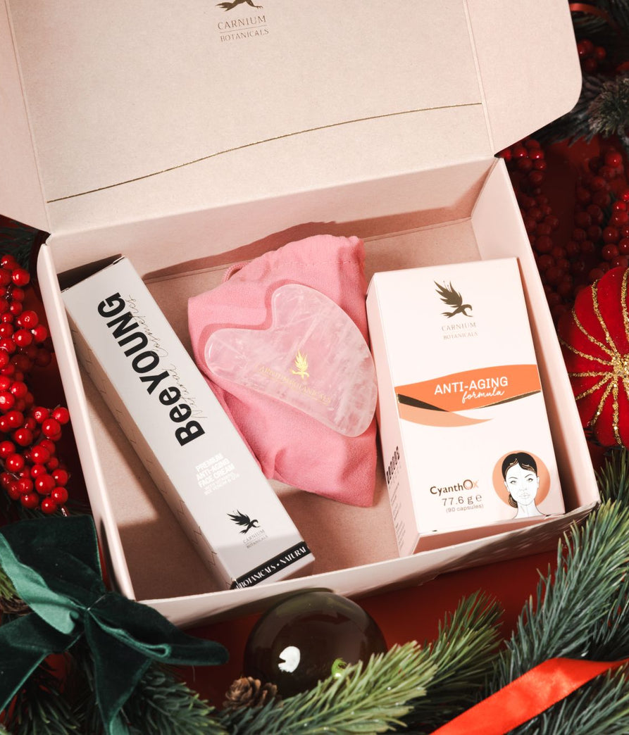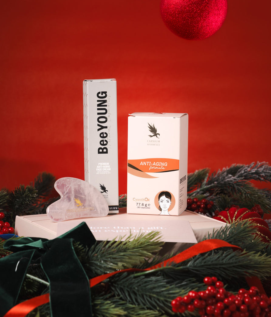Egy ajándék, amely luxust nyújt; nem csak egy pillanat, hanem egy egész rituálé Ez nem csak egy szépségápolási termék, hanem egy gondosan kiválasztott, egymást kiegészítő duó. Az anti-aging formula belülről hat, a BeeYoung krém kívülről, és amikor az egyiket elhasználja, a másik folytatja a hatást. A GUA SHA (ingyenes) pedig kiegészíti az egészet egy teljes szépségápolási rituálévá! 2. Ünnepi elegancia, amely magáért beszél A csinos csomagolás, a puha belső bélés és a dedikációs kártya kényeztetés, figyelem és finom presztízs benyomását kelti. Ez egy átgondolt, személyes és célzottan kiválasztott ajándék, tökéletes a decemberi pillanatokhoz, amikor mi, nők valami szépet szeretnénk magunknak. 3. Ajándék, amely melegséget és hálát fejez ki A szett ideális ajándék a téli időszakban: tisztelet jeléül, az elmúlt évért való köszönetként vagy gondoskodásként valaki iránt, aki mindig másoknak ad. Ez egy ajándék, amely kényelmet, szépséget és nyugodt pillanatokat hoz egy olyan időszakban, amikor mindannyian szükségünk van egy kicsi, de erős pillanatra- csak magunknak.